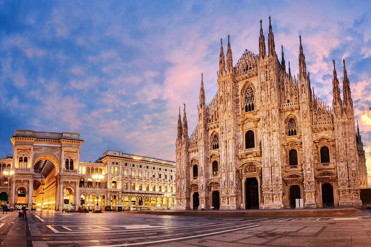 Café da manhã. Durante a manhã viajaremos pela chamada Itália continental, paralelamente à cordilheira dos Alpes até chegarmos a Milão. Tempo livre para descobrir as belezas da capital da Lombardia, onde além de conhecer os locais mais importantes da cidade, como o Castello Sforzesco, a Galeria Vittorio Emmanuele ou o Duomo, obra-prima da arte universal; Poderá descobrir a grandiosidade dos seus elegantes edifícios, caminhando pelas ruas da moda ou saboreando um delicioso cappuccino num dos seus cafés mais tradicionais do final do século XIX e início do século XX, como o Zucca, o Taveggia ou o Cova. Acomodação.